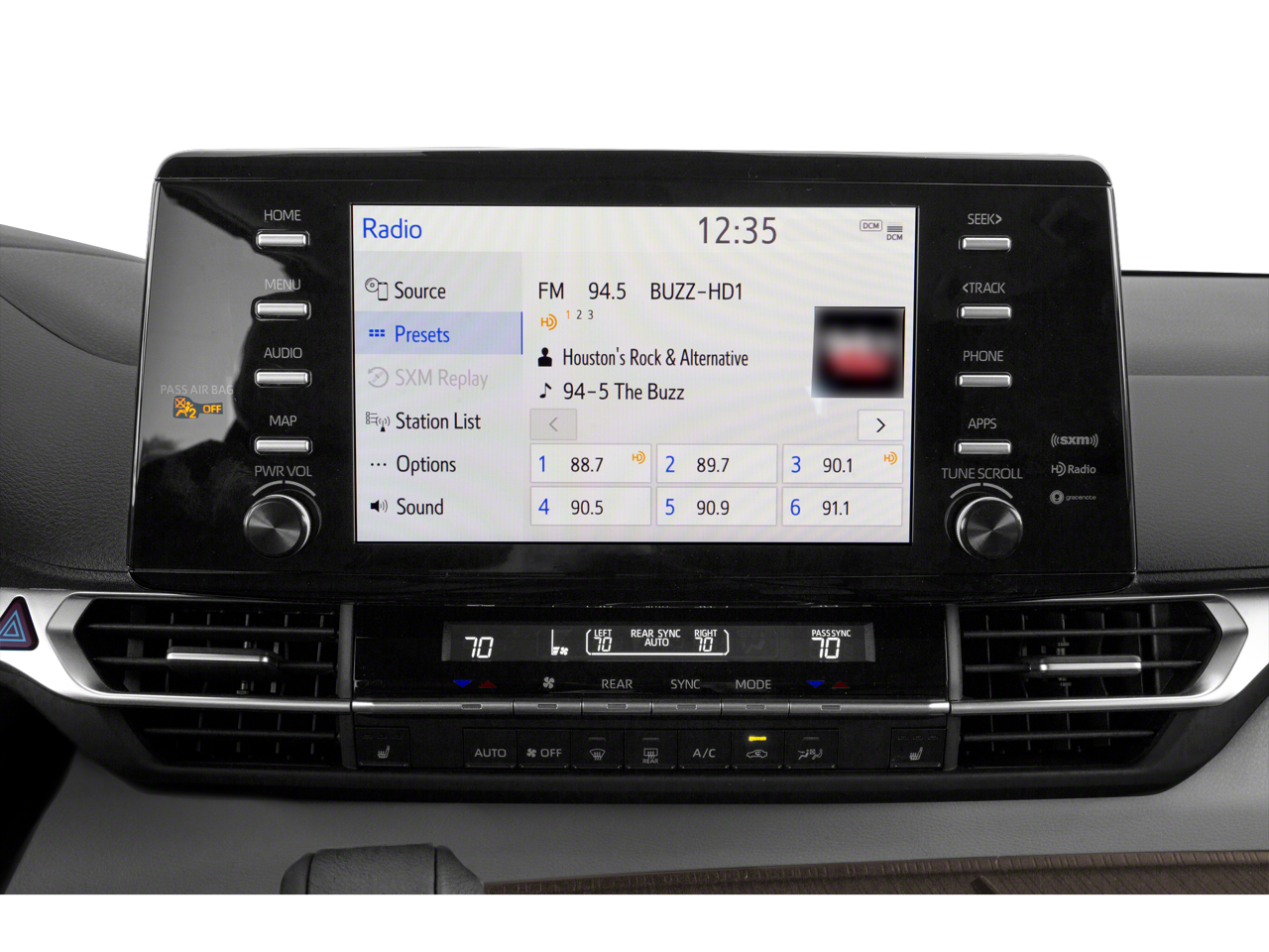 - Radio: Audio Plus -inc: 8 speakers, 9" touchscreen, USB media port, 6 USB charge ports, hands-free phone capability and music streaming via Bluetooth® wireless technology, Android Auto, Apple CarPlay, Amazon Alexa compatibility, SiriusXM w/3-month All Access trial, Safety Connect w/1-year trial, Wi-Fi Connect w/up to 2 GB within 3-month trial and Service Connect w/10-year trial See toyota.com/audio-multimedia for details. See toyota.com/connect-services for details.